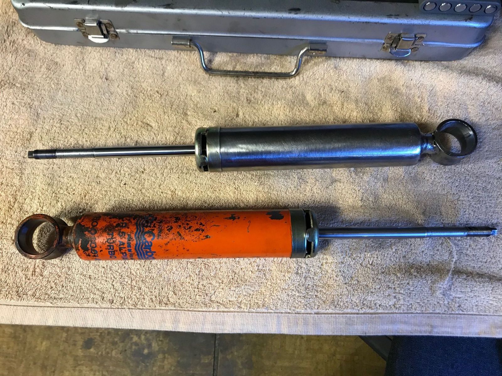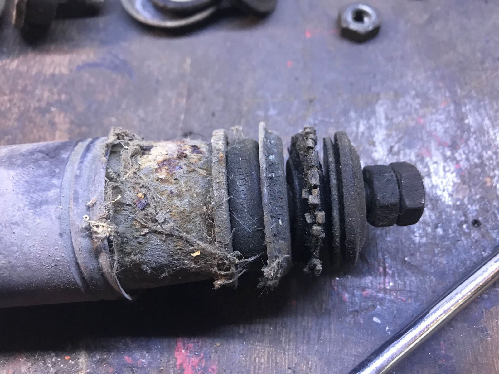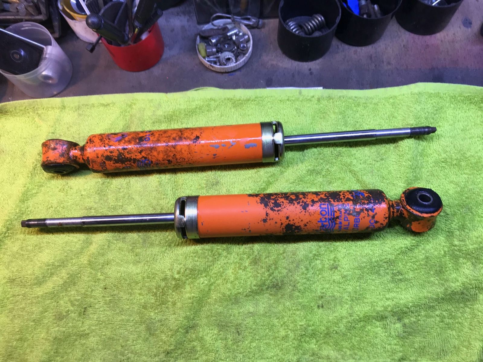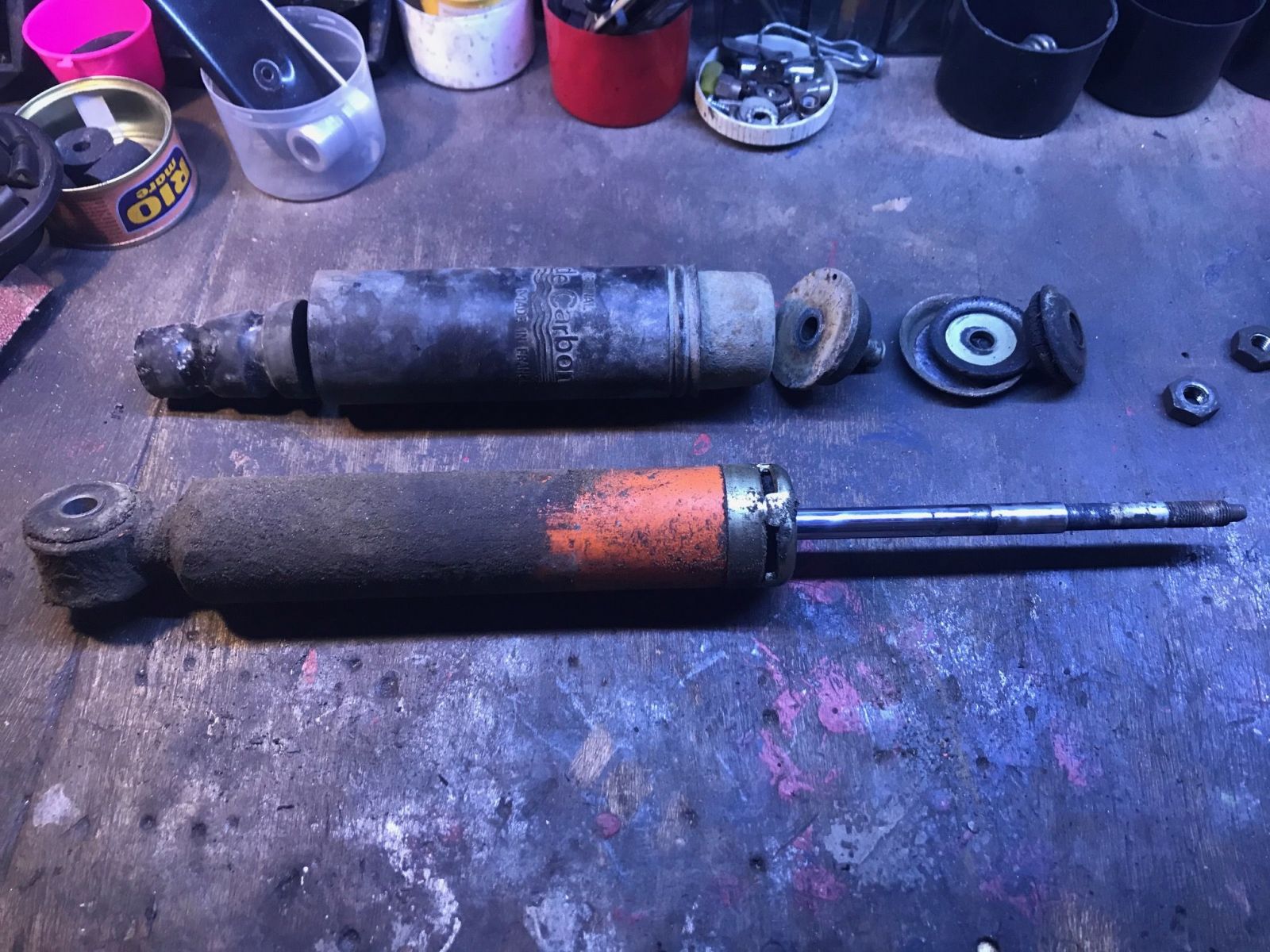 A címben szereplő első lengéscsillapítók egy donor autóból származnak, melyet Dani barátommal berheltünk ki a tavaly nyáron egy roncsból. Nagy kincs volt, hiszen ez egy gyári Renault cikkszámos deCarbon gátló pár volt, ezeket anno tunningként lehetett rendelni direkt az Alpine Turbókhoz, melyek a gyárinál keményebbek, progresszívebb rugózást kölcsönöztek az Alpine Turbóknak. Ezek most elég viharvert állapotban kerültek a műhely asztalomra.