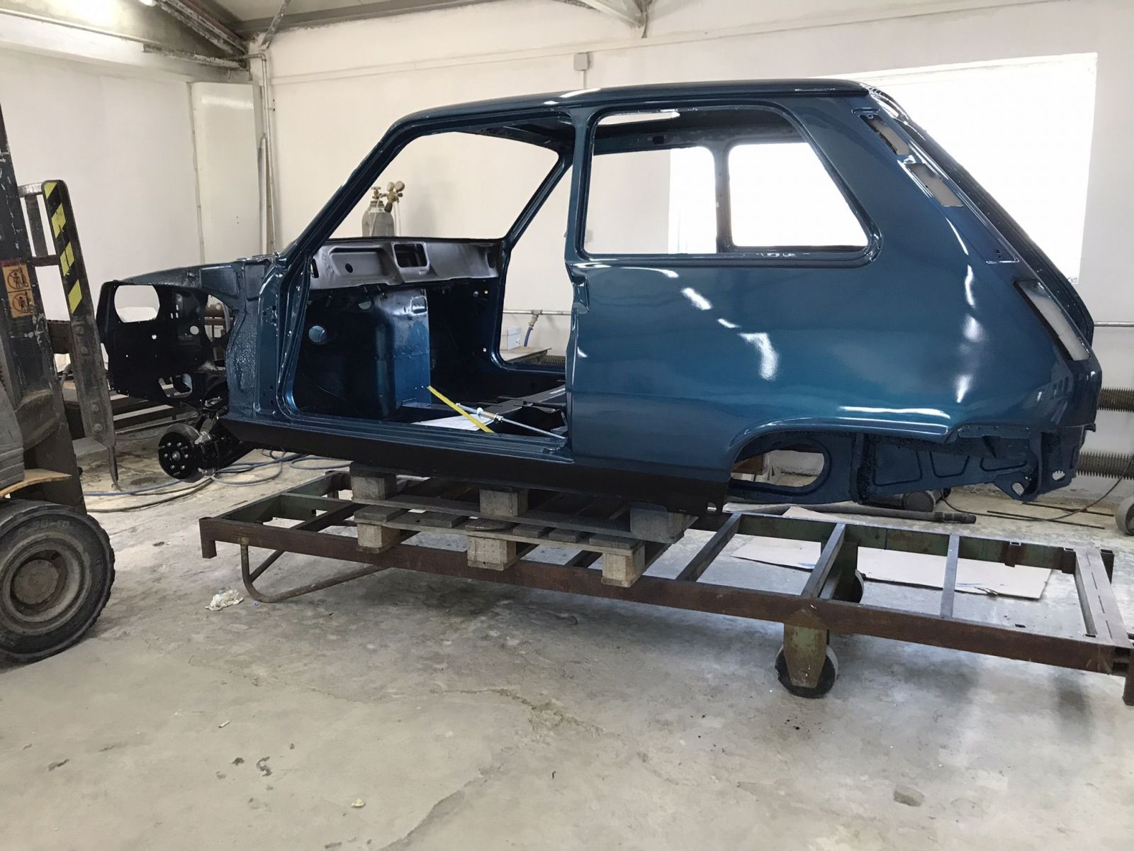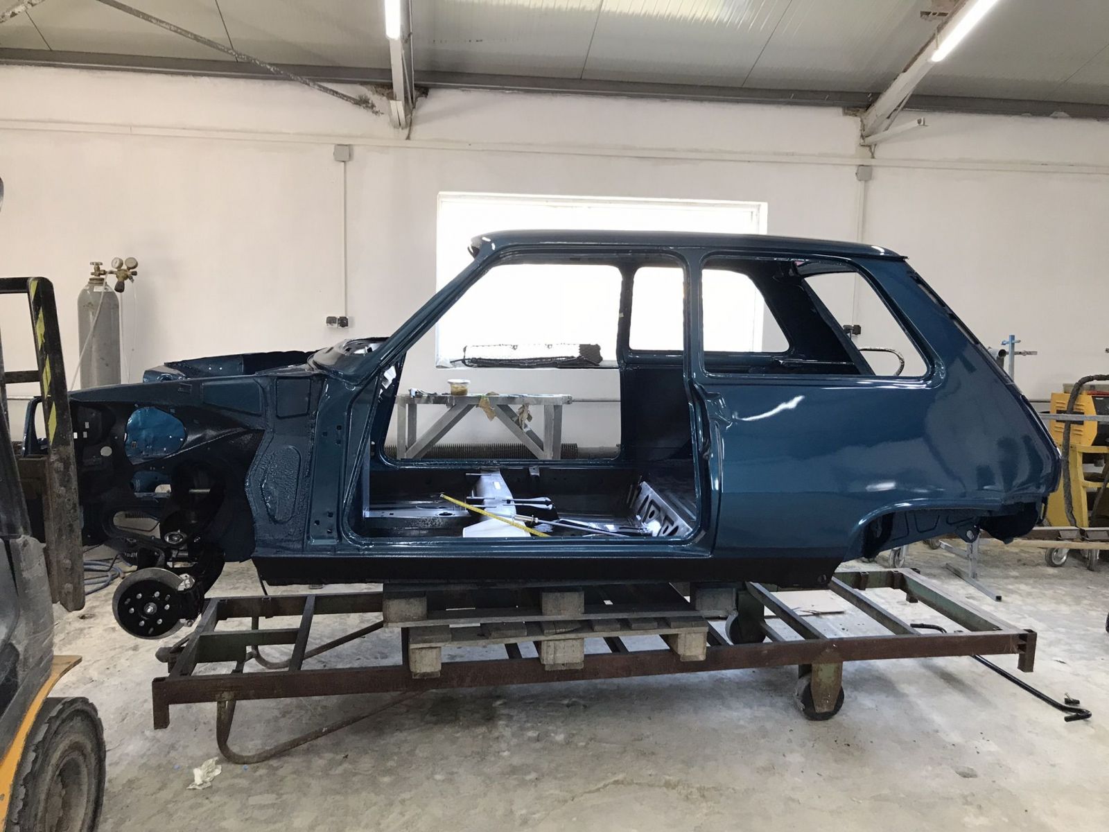 Hosszas várakozás után végre hívást kaptam a nyár végén, hogy a karosszéria elkészült, megnézhetem az Alpine Turbo várva várt új ruháját. Amikor elgurult előttem a műhely tolóajtaja és elém tárult az Alpine Turbo vadiúj színe… elámultam mennyire gyönyörű lett. Picit féltem, hogy a választott gyári tengerész kék szín milyen lesz majd élőben, de maikor megláttam az állam leesett annyira jól áll a kocsinak. Eddig ezt a színt élőben sosem volt szerencsém megnézni, csak a korabeli, rosszminőségű, agyon digitalizált és szűrt képeken, illetve egy barátom kertjében egy nagyon-nagyon megfáradt Alpine Turbo leharcolt kaszniján. Ekkor döntöttem el, hogy az én kocsim nem az a klasszikus alpine kék lesz (ami szintén gyári kód), hanem a Renault 491-es kódszámú Navy blue fantázianevű színében fog pompázni. Mit ne mondjak jó választás volt…