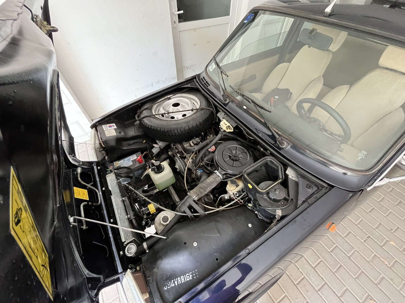 Megérkezésünk után a tulaj szívéjesen fogadott bennünket és azonnal megmutatta a kis kincset – ami annyira a szívéhez nőtt, hogy másik 6 autó közé volt beékeve, így alig bírtam a félhomályban megnézni. Kipróbálni??? Esély nem volt rá. Nem volt mit tenni a kis zseblámpámat megragadva bekúsztam a kocsi alá, közé, fölé, alá. Tapogattam, szemrevételeztem. Hmmm…egész jó! Nem nagyon találta benne hibát. Nyilván voltak rajta kisebb, nagyobb hibák – nem típusazonos tolatólámpa, ocsmány lemezfelnik, öreg gumik, ronda üléshuzatok, nem gyári szín stb. De a kocsi kaszni jó, a motor pöcc-röff, indul! Nem füstöl! Ez igen. Megalkudtunk és a tréler 5 nappal később le is szállította a kis kék gyöngyszemet Szegedre. Kék. Eredetileg ugyanis fekete volt, de nem bántam, hogy átfestették Pécsen, mert ad egy: elég jól sikerült, ad kettő: gyönyörű ez a szín – igaz nem gyári Renault színkód, de nagyon hasonló és végül, de nem utolsó sorban: szerintem baromira nem áll jól ennek a típusnak a fekete szín. Egyedül a motortér és az alja maradt gyári fekete. Nem rossz kezdés…